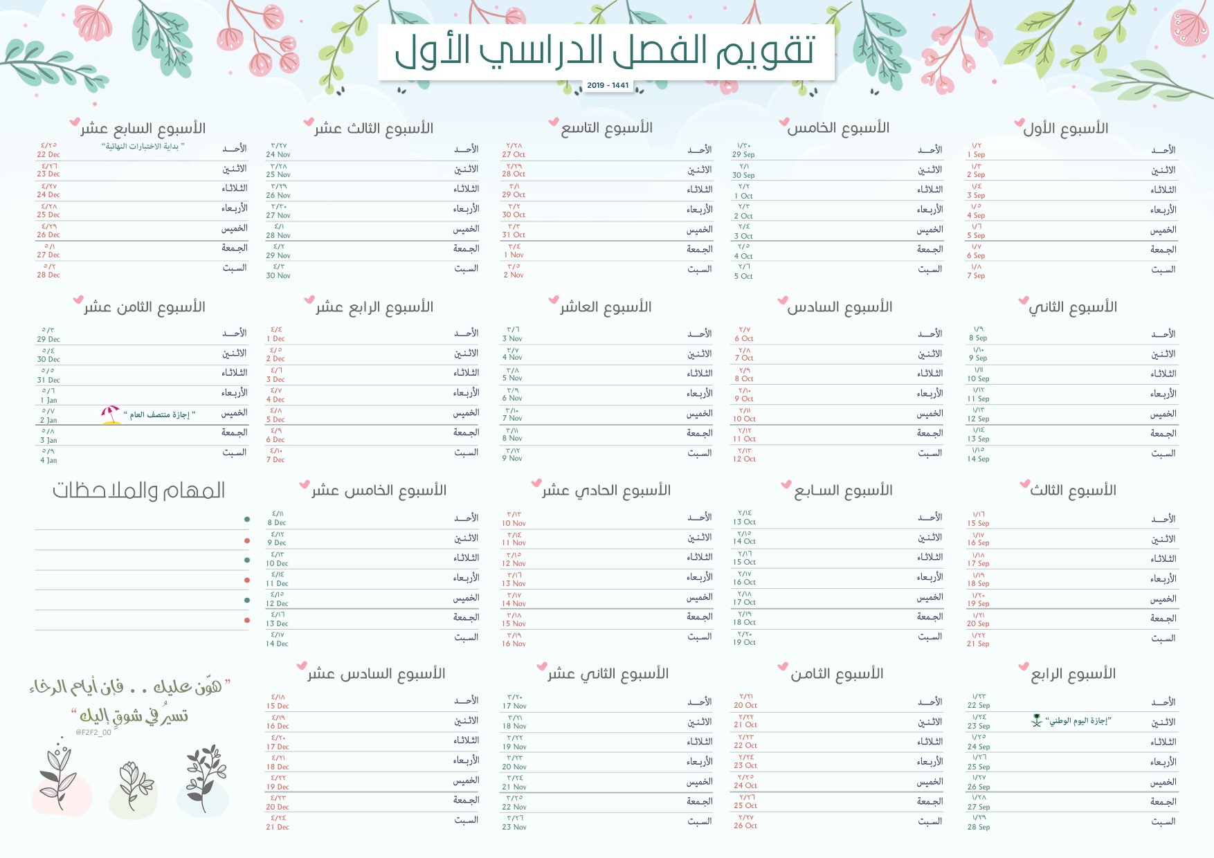 التقويم الدراسي 1442 بالاسابيع from wikiyat.com التقويم الدراسي بالاسابيع 1442 بالميلادي. نزِّل اليوم التقويم الهجري لعام 1442هـ، مع التقويم والتاريخ الميلادي. يبدأ اليوم الدراسي الساعة 9 صباحاً. العطل والاجازات الرسمية لعام 1442 هجري. يحتوي التقويم الأكاديمي على 1442 أسبوعًا للفصل الدراسي الثاني ، والذي سيبدأ في الأيام القليلة القادمة في مدارس مختلفة في المملكة العربية السعودية ؛ يحدث هذا بعد انتهاء إجازة نصف العام التي حصل عليها الطلاب مؤخرًا ، وفي السطور التالية سنشرح لك تفاصيل. تبدأ إختبارات المرحلة المتوسطة والثانوية من الساعة 12.30 وحتى الساعة 2.30 ظهراً. من خلال هذا المقال نقدم اليكم تقويم العام الدراسي الجديد لعام 1442هـ/ 2021م و توزيع الأسابيع الدراسة للفصل الدراسي الأول لعام 1442هـ. Последние твиты от التقويم الدراسي 1442 (@taqwimksa).
